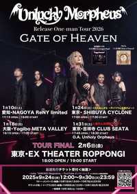 01. Gate of Heaven 02. 世界輪廻 03. Convergent Rays 04. Savior After God 05. 万華鏡 06. Who will be the next king? 07. Ready for a new stage 08. SAKURA chevalier 09. Blink of an eye 10. 殺戮のミセリア(re-recording) 【Release One-man tour 2026『Gate of Heaven』開催決定!】 1/10(土)愛知・NAGOYA ReNY limited 1/18(日)大阪・Yogibo META VALLEY 1/24(土)東京・SHIBUYA CYCLONE ※企画ライブ「光のあんきも」 1/31(土)東京・吉祥寺 CLUB SEATA(O.A. Unholy Orpheus) ※企画ライブ「暴れん坊限定」 2/6(金)東京・EX THEATER ROPPONGI